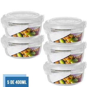 Conjunto 5 Potes 400Ml Vidro Hermético Mantimentos Marmita