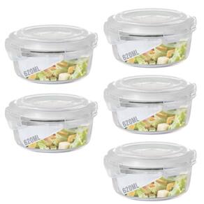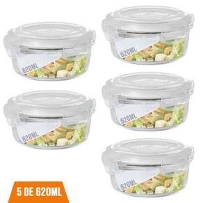 Kit com 5 Potes de Vidro com Tampa Hermética Redondo 620 ml