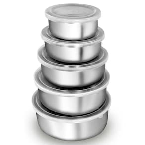 Conjunto 5 Potes Em Alumínio Vasilha Bowl Tigelas Com Tampa -