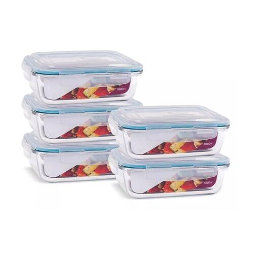 Conjunto 5 potes vidro hermético marmita mantimentos 1040ml