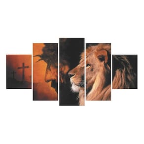 Conjunto 5 Quadros Decorativo Jesus Leão Religioso Biblia Kit 5 quadros decorativos mosaicos Material: Quadros produzido em mdf - dimensões: Tamanho total do quadro montado na parede: 115cm x 60cm - 1 peça central com 60x22cm - 2 peças intermediárias: 22x50cm - 2 peças laterais: 22x30cm. - deixar espaçamento entre as peças na hora da instalação = 1 cm -informações técnicas: O quadro não precisa de moldura, estão pronto para pendurar na parede. São feitos em adesivos fosco e impressos em alta qualidade. Aplicado em mdf com espessura de 3mm. - instalação: Não é necessário furar a parede para instalação, pois, enviamos fitas 3m com grande poder adesivo para facilitar a instalação. É necessário na hora da instalação posicionar o quadro em 1cm de largura entre eles para melhor qualidade de visualização. Limpe o local que vai ser instalado o quadro com um pano úmido, após secar o local, visualize como Vai ser o alinhamento, e retire a proteção da fita dupla face parte verde da fita e pressione No lugar desejado para a fixação. - limpeza após instalação: A limpeza pode ser realizada apenas com um pano seco macio, se desejar pode ser úmido porém sem conter álcool ou produtos químicos. -demais dúvidas estamos à disposição, basta nos chamar no campo mensagens que estamos aqui para melhor atendê-los : Boas compras Ean: 1001001059782