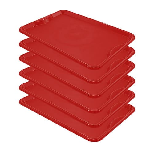 Conjunto 6 Bandejas Plásticas Self-Service Refeição 48 x 32,5 x 2 BR-100 Vermelha - Della Plast