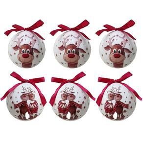 Kit 6 Bolas Natal Decoradas Rena Love e Laço Vermelho 7,5cm