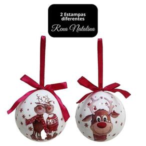 Kit 6 Bolas de Natal Decoradas – Estampa Rena Love com Laço Vermelho 7,5cm