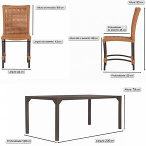 Mesa Ripada 100x200cm com 6 cadeiras Cannes de alumínio pintura marrom e trama tela de corda náutica Trama