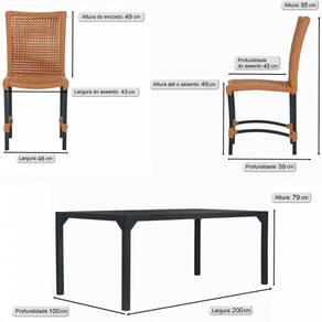Mesa Ripada 100x200cm com 6 cadeiras Cannes de alumínio pintura preta e trama tela de corda náutica Trama