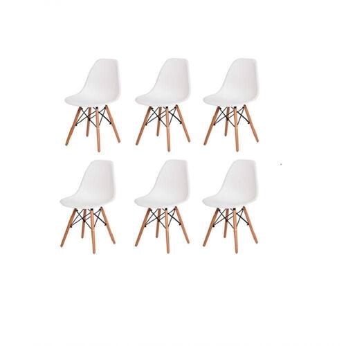 Conjunto 6 Cadeiras Charles Eames Wood Base Madeira Branca - Branco