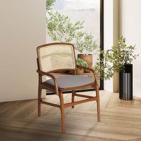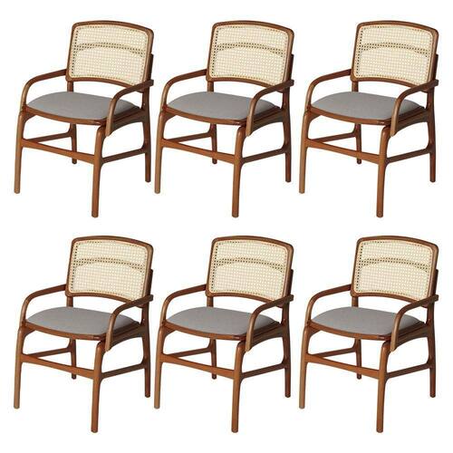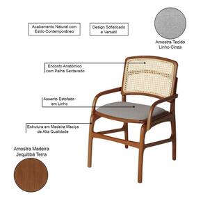 AS IMAGENS SÃO MERAMENTE ILUSTRATIVAS E PODEM SOFRER VARIAÇÕES DE COR E PEQUENOS DETALHES DE ACORDO COM O SEU MONITOR, ILUMINAÇÃO DO AMBIENTE E ATÉ MESMO A SUA PERCEPÇÃO VISUAL.Conjunto 6 Cadeiras de Cozinha FlorenÃa em Madeira Jequitibà Terra BraÃo Encosto Palha Linho Cinza