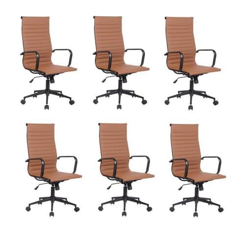 A Cadeira Sevilha já é queridinha do design e garante que seu espaço de trabalho e estudos seja confortável e funcional. Seus detalhes em aço preto dão o toque diferente que seu ambiente merece! Design contemporâneo que agrega elegância e estilo para o seu dia a dia. Conjunto com 6 Cadeiras de escritório com estrutura em aço pintado à pó preto, revestimento em poliuretano (PU), com encosto alto. Possui base giratória em aço pintado à pó preto e rodizíos em nylon. Possui ajuste de altura (mín 105cm e máx 115cm) e sistema relax. Altura do Conjunto: 105 cm Ambiente: null Ambiente Principal: Escritório Cor: Marrom Informação Complementar: 1x Conjunto 2 Cadeiras de Escritório Presidente Sevilha Alta com Base Office Marrom EscuroLargura: 60Altura: 105Peso: 10.7Profundidade: 60Necessita Montagem: Sim1x Conjunto 4 Cadeiras de Escritório Presidente Sevilha Alta com Base Office Marrom EscuroLargura: 60Altura: 105Peso: 10.7Profundidade: 60Necessita Montagem: Sim Possui Rodízio: Sim Suporta Até (kg): 120