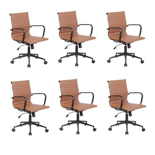 A Cadeira Sevilha já é queridinha do design e garante que seu espaço de trabalho e estudos seja confotrável e funcional. Seus detalhes em aço preto dão o toque diferente que seu ambiente merece! Design contemporâneo que agrega elegância e estilo para o seu dia a dia. Conjunto de 6 Cadeiras de escritório com estrutura em aço pintado à pó, revestimento em poliuretano (PU), com encosto baixo. Possui base giratória em aço pintado à pó e rodízios em nylon. Possui ajuste de altura (mínimo 89cm e máximo 98cm) e sistema relax. Altura do Conjunto: 89 cm Ambiente: null Ambiente Principal: Escritório Cor: Marrom Informação Complementar: 1x Conjunto 2 Cadeiras de Escritório Diretor Sevilha Baixa com Base Office Marrom EscuroLargura: 59 cmAltura: 89 cmPeso: 10,3 kgProfundidade: 59 cmNecessita Montagem: Sim1x Conjunto 4 Cadeiras de Escritório Diretor Sevilha Baixa com Office Base Marrom EscuroLargura: 59 cmAltura: 89 cmPeso: 10,3 kgProfundidade: 59 cmNecessita Montagem: Sim Possui Rodízio: Sim Suporta Até (kg): 120 kg