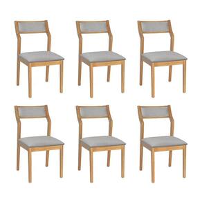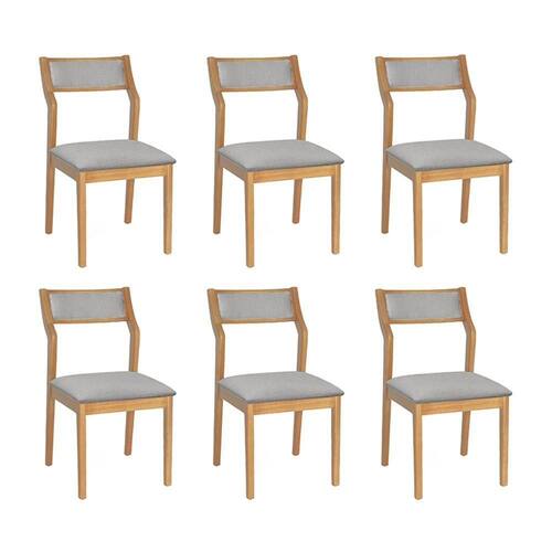 AS IMAGENS SÃO MERAMENTE ILUSTRATIVAS E PODEM SOFRER VARIAÇÕES DE COR E PEQUENOS DETALHES DE ACORDO COM O SEU MONITOR, ILUMINAÇÃO DO AMBIENTE E ATÉ MESMO A SUA PERCEPÇÃO VISUAL.Conjunto 6 Cadeiras de Jantar Lagum Jequitibà Natural Encosto Linho Cinza