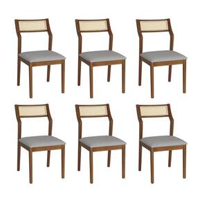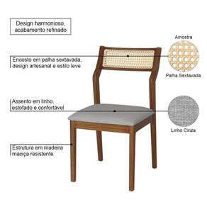 AS IMAGENS SÃO MERAMENTE ILUSTRATIVAS E PODEM SOFRER VARIAÇÕES DE COR E PEQUENOS DETALHES DE ACORDO COM O SEU MONITOR, ILUMINAÇÃO DO AMBIENTE E ATÉ MESMO A SUA PERCEPÇÃO VISUAL.Conjunto 6 Cadeiras de Jantar Lagum Jequitibà Terra Encosto Premium Linho Cinza e Corda NÃutica