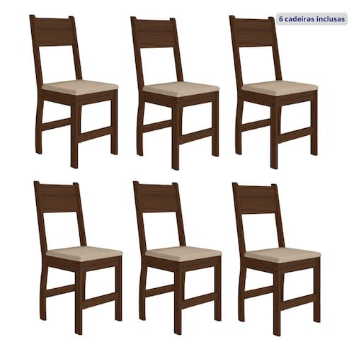Com qualidade Poliman, o melhor em design, conforto e durabilidade. Acabamento: Fosco Acabamento da Estrutura: Pintura Almofada do assento: Fixa Altura do assento até o chão: 47.0000 Altura dos Pés: 45 cm Altura Máxima dos Pés: 45.0000 Ambiente Principal: Cozinha codigo_ean: 7900288111234 Complexidade da Montagem: Baixa: pode ser montado por uma pessoa sozinha Cor: Amendoa/Savana Cor do Produto: Amendoa/Savana Dimensões do assento: C.38xL.40xE.1,5cm Dobrável: Não Enchimento do Assento: Espuma D-10 Escala de Brilho: Fosco Estrutura do Assento: MDP Estrutura do Encosto: MDP Giratória: Não Informações Complementares: Assento com espuma revestida em material sintético de alta resistência, travas, sapatas. Itens Inclusos: Conjunto 6 Cadeiras, Kit de Ferragens e Manual de Montagem. Manual de Montagem e Instalação: https://product-hub-prd.madeiramadeira.com.br/983050/documents/4aee1364-f13e-4ed1-a26c-b817457ef217279563649317438001183151.pdf Marca: Poliman Móveis Material Principal: MDF Necessita Montagem: Sim Origem do Produto: Nacional Peso: 35,4 kg Possui Apoio para Braços: Não Possui Apoio Para os Pés: Não Possui Assento/Encosto Estofados: Possui Somente o Assento Estofado Possui Espaldar: Não Possui Rodízio: Não Quantidade de Itens: 6 Recomendações de Uso, Manutenção e Limpeza: Utilizar uma flanela seca ou umedecida. Não usar produtos abrasivos. Revestimento do Assento: Courvin Sistema de Montagem: Parafusos, cantoneiras, pregos, sapatas, junção. Tipo de Assento: Fixo Tipo de Encosto: Fixo