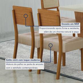 Imagine sua sala de jantar com um toque de charme e sofisticação que conquista no primeiro olhar. Nosso conjunto de cadeira vem com pés em madeira maciça que garantem estabilidade e durabilidade, traz um assento macio e acolhedor que transforma cada refeição em um momento de prazer. O encosto confere leveza e um ar artesanal exclusivo, criando um ambiente elegante e convidativo para receber amigos e família. Um design irresistível para quem busca conforto, estilo e qualidade em um só produto.