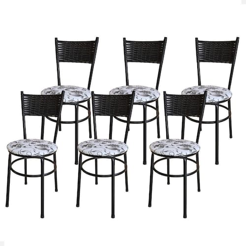 Conjunto 6 Cadeiras Pretas Para Cozinha Viena Cor:floral Branco