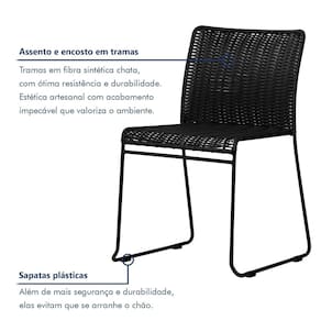 É fácil de limpar? Sim, basta passar um pano úmido para remover poeira e sujeiras leves. Acabamento da Estrutura: Pintura Altura do assento até o chão: 46 cm Altura dos Pés: 46 cm Altura Máxima dos Pés: 46.0000 Ambiente Principal: Sala de Jantar codigo_ean: 7900288223029 Cor: Preto Cor do Produto: Preto Dobrável: Não Escala de Brilho: Fosco Estrutura do Encosto: Fibra Sintética Informações Complementares: Pequenas variações de tonalidade de cor são intrínsecas ao produto, e não podem ser consideradas defeito.Para aprimoramento de projeto, os produtos podem sofrer modificações. Itens Inclusos: 6 Cadeiras Linha ou Coleção: Fronteira Marca: Prima Design Material da Base: Aço Material Principal: Metal Necessita Montagem: Não Origem do Produto: Nacional Peso: 2,2 kg Possui Apoio para Braços: Não Possui Apoio Para os Pés: Não Possui Rodízio: Não Quantidade de Itens: 6 Recomendações de Uso, Manutenção e Limpeza: A estrutura deve ser limpa utilizando pano seco de algodão ou flanela. Se necessário, utilize pano umedecido apenas com água, secando o móvel em seguida.Não utilize solvente, álcool, acetona, lustra móveis, produtos abrasivos e outros produtos que contenham soda e ou ácidos para limpar e tirar manchas dos móveis.Não expor os móveis à luz solar e ambientes com umidade relativa elevada.Manter a estrutura metálica limpa, utilizando pano seco ou cera a base de silicone. Tipo de Assento: Fixo Tipo de Encosto: Fixo Marca: Não Informado