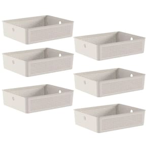 Conjunto 6 Cestos Organizadores 8,2L Flow Bege 34x27x9cm Lavanderia Banheiro Closet.
