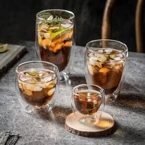 Conjunto 6 copos para café dupla parede de vidro 70 ml Conjunto de copos com 6 peças para café coado e café expresso de vidro resistente, para servir com elegância e sofisticação.