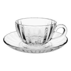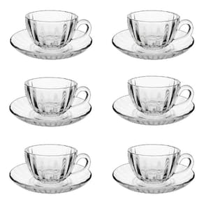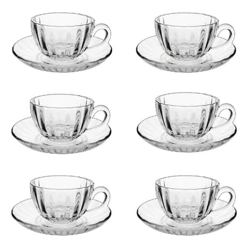 6 xícaras e 6 pires de vidro