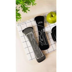 O estojo em neoprene cinza não apenas protege os talheres e acessórios, mas também adiciona um toque de elegância e praticidade para transportá-los com segurança.