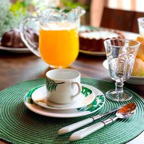 Conjunto 6 Peças Jogo Americano Redondo 38cm Sousplat Glamour Verde O Conjunto 6 Peças Jogo Americano Redondo 38cm Sousplat Glamour Verde é perfeito para servir os seus convidados com muito estilo Fabricado em Polipropileno / Poliéster, ele é altamente durável e possui traços elegantes e sofisticados. Além disso, sua qualidade artesanal garante um toque especial à mesa posta. Não deixe de conferir O Conjunto 6 Peças Jogo Americano Redondo 38cm Sousplat Glamour Verde é ideal para você que busca elegância e sofisticação em seus ambientes. Queremos que você tenha um produto de alta qualidade e durabilidade em suas mãos. A aplicação da técnica de Polipropileno/Poliéster no jogo americano dá um toque especial ao objeto, tornando-o único. Adquiria já o seu e surpreenda seus convidados Características: - Conjunto Americano fabricado em Polipropileno/Poliéster, sendo composto por 6 peças. - Tamanho de 38cm de diâmetro, ideal para mesa posta. - Peças produzidas artesanalmente com material resistente e durável. - O design do conjunto é elegante e sofisticado, podendo ser Utilizado em qualquer ocasião. Especificações: - Marca: Mimo - Tamanho: 38cm de diâmetro - Material: Polipropileno / Poliéster - Cor: Verde - Quantidade: 6 peças Ean: 7807585230357