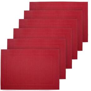 Conjunto 6 Peças Jogo Americano Sousplat Moldura Vermelho O Conjunto Jogo Americano Sousplat Moldura Vermelho é composto por seis lugares americanos retangulares de 45cm por 30cm, fabricados em PVC e Poliéster. A elegância é o destaque do conjunto, que proporciona requinte ao dia a dia. Atualize o visual à sua mesa. Perfeito para uso diário, o jogo americano é a opção certa para quem quer praticidade e capricho ao servir as refeições. Este conjunto vai surpreender suas visitas Veja as fotos do produto em destaque e surpreenda-se. O Conjunto Jogo Americano Sousplat Moldura Vermelho é produzido com materiais de alta qualidade e vêm com 6 lugares, sendo um jogo completo prontinho para transformar sua mesa de jantar. Características: - Conjunto Americano fabricado em polipropileno e poliester, sendo composto por 6 peças. - Tamanho de 45cm x 30cm, ideal para mesa posta. - Peças produzidas artesanalmente com material resistente e durável. - O design do conjunto é elegante e sofisticado, podendo ser Utilizado em qualquer ocasião. Especificações: - Marca: Mimo - Tamanho: 45cm x 30cm - Material: 70% PVC e 30% Poliéster - Cor: Vermelho - Quantidade: 6 peças
