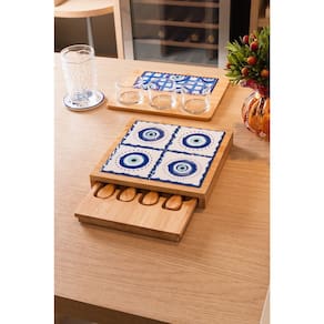 Descrição Conjunto 6 Peças para Queijo Tábua com Gaveta Greek 23 x 23 x 4cm Bambu - Lyor