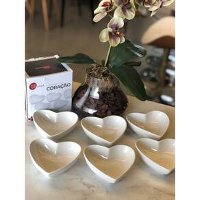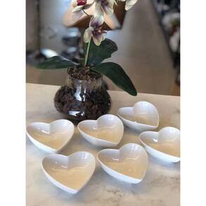 Conjunto 6 Petisqueiras de Porcelana Coração 12cm x 10cm x 4cm - Wolff
