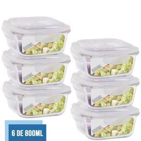 Conjunto 6 Pote Vidro 800ml Hermético Marmita Tampa 4 Travas Conjunto com 6 Potes de Vidro com Tampa Hermética 800ml