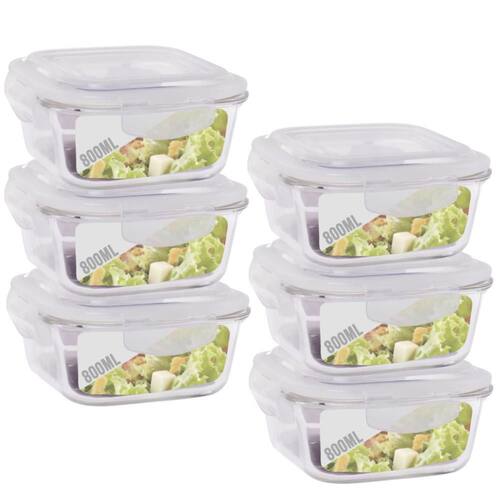 Conjunto 6 Pote Vidro 800ml Hermético Marmita Tampa 4 Travas Conjunto com 6 Potes de Vidro com Tampa Hermética 800ml