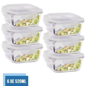 Conjunto 6 Potes de Vidro 520ml Hermético 4 Travas Marmita Conjunto com 6 Potes de Vidro com Tampa Hermética 520ml