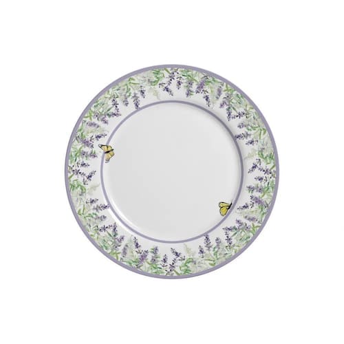 Contendo 6 pratos sobremesa com 21 cm de diâmetro.