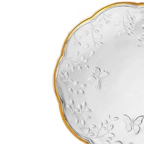 1 Conjunto 6 Pratos Sobremesa New Butterfly Fio de Ouro Cristal 20cm 220864 - Lyor