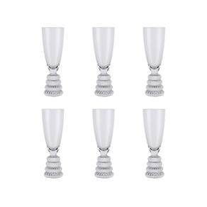 Conjunto 6 Taças de Champanhe em Vidro com Base Canelada