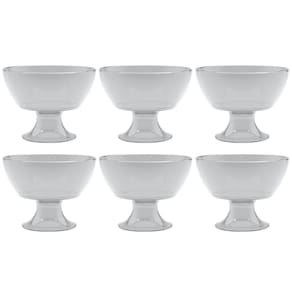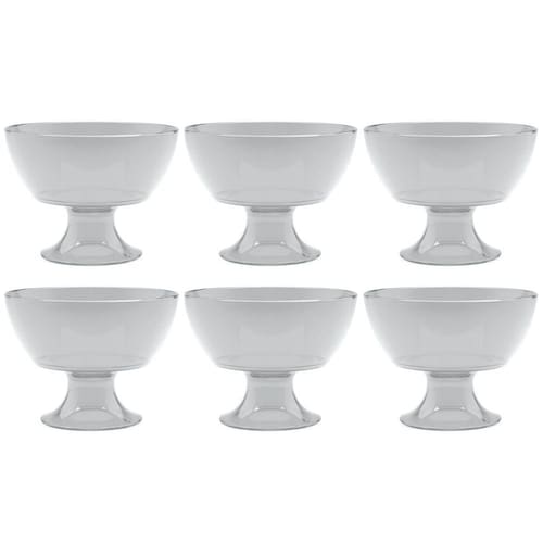 Este conjunto de taças possui o pé alto para facilitar a pega, o servir e deixa as taças mais elegantes. São fabricadas em poliestireno que trás para as taças uma ótima transparência e alto brilho, além de não transferir odor, nem deixar gostos desagradáveis aos alimentos. Possuem um design ideal para compor a mesa e proporciona você a servir deliciosas sobremesas com muito charme e sofisticação.