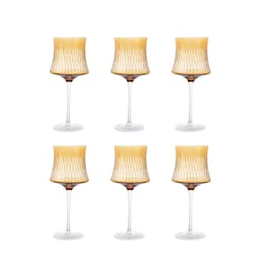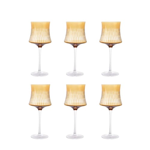 Cód: JL0101 Conjunto 6 Taças de Vidro Âmbar Material: Vidro Cor: Âmbar Capacidade: 500ml Dimensões: 23x8,5cm (AxL)