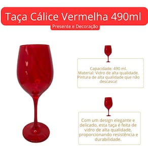 Capacidade: 490ml Material: Vidro resistente e de alta qualidade Cor: Vermelha, adicionando um toque vibrante à sua mesa Quantidade: 6 unidades por conjunto