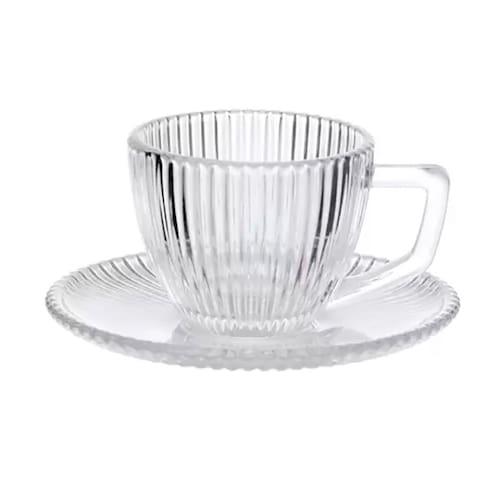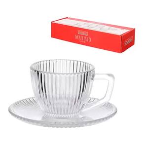 1 Conjunto 6 Xícaras de Café com Pires Graffiato 90ml Transparente JGXC084 - Hauskraft