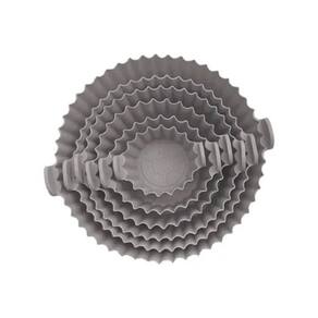 Conjunto 60 Formas de Silicone Air Fryer Forno Micro Ondas Conjunto Formas de Silicone Air Fryer Forno Micro Ondas ===================================== Produzidas em silicone flexível e atóxico, essas formas suportam altas temperaturas e podem ser usadas com segurança no forno, micro-ondas, air fryer e freezer. Seu formato redondo com alças laterais garante praticidade no manuseio e facilidade na hora de desenformar. Além da resistência térmica, o silicone de alta qualidade facilita a limpeza, pois não retém resíduos e pode ser lavado manualmente ou em lava louças. Reutilizável e durável, o material permite uso frequente sem perder a eficiência. Para melhores resultados, recomenda-se untar levemente com óleo ou antes do uso e evitar utensílios metálicos. A limpeza deve ser feita com esponja macia e detergente neutro para preservar o material por mais tempo. ===================================== Contém: 60 Formas 10 de cada tamanho Especificações: - Material: Silicone - Medida Forma 01: 05cm x 19cm cada - Medida Forma 02: 4,5cm x 16cm cada - Medida Forma 03: 04cm x 15cm cada - Medida Forma 04: 04cm x 12cm cada - Medida Forma 05: 3,5cm x 9,5cm cada - Medida Forma 06: 3,5cm x 07cm cada - Temperatura Suportada: até 220C - Flexível - Com Alça - Livre de BPA - Atóxico - Antiaderente - Reutilizável - Cor enviada de forma aleatória conforme disponibilidade em ===================================== Devido à diferença entre monitores e iluminação diferentes, pode haver variação na tonalidade apresentada no anúncio. Medidas muito aproximadas. Marca: Não Informado