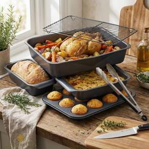 Recupere o espaço da sua cozinha com este conjunto profissional de sete peças empilháveis para assar da MasterClass.