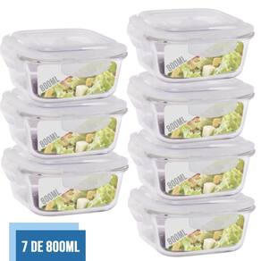 Conjunto 7 Pote Vidro 800ml Hermético Marmita Tampa 4 Travas Conjunto com 7 Potes de Vidro com Tampa Hermética 800ml