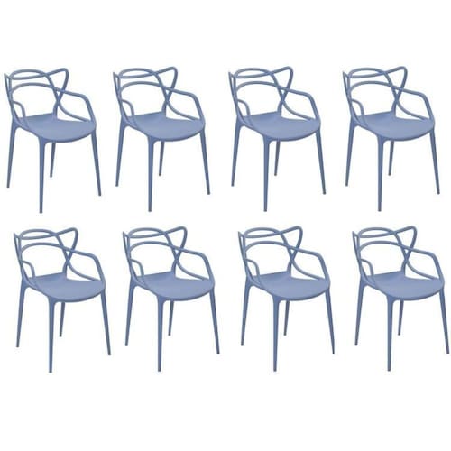 Conjunto com 8 cadeiras injetadas em peça única, com quatro pernas de apoio e sapatas incolores. Encosto vasado com assento inteiro abaulado. Empilhável. Possui certificação do Inmetro. Altura do Conjunto: 82.5 cm Ambiente: Sala de Jantar Ambiente Principal: Sala de Jantar Cor: Azul Caribe Informação Complementar: 2x Conjunto 4 Cadeiras Allegra Azul Caribe Largura: 53 cm Altura: 82,5 cm Peso: 4,25 kg Profundidade: 57,5 cm Necessita Montagem: Não