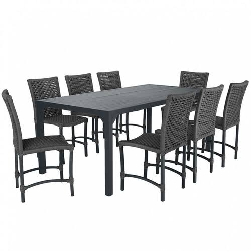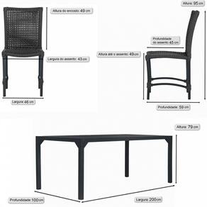 Conjunto 8 Cadeiras Cannes Corda Náutica e Mesa Retangular Ripada 2,00m em Alumínio para Edícula, Jardim, Área, Varanda, Cozinha - Pintura Preta - Preto