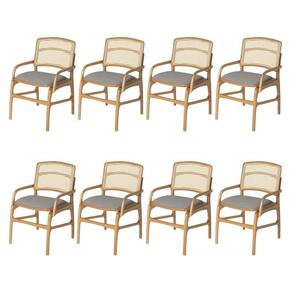 AS IMAGENS SÃO MERAMENTE ILUSTRATIVAS E PODEM SOFRER VARIAÇÕES DE COR E PEQUENOS DETALHES DE ACORDO COM O SEU MONITOR, ILUMINAÇÃO DO AMBIENTE E ATÉ MESMO A SUA PERCEPÇÃO VISUAL.Conjunto 8 Cadeiras de Cozinha FlorenÃa em Madeira Jequitibà Natural BraÃo Encosto Palha Linho Cinza