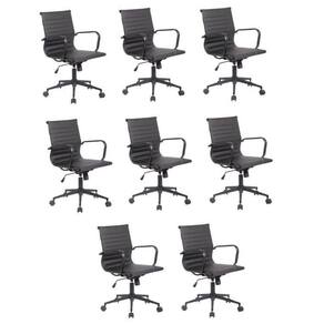 Conjunto de 8 Cadeiras de escritório com estrutura em aço pintado à pó, revestimento em poliuretano (PU), com encosto baixo. Possui base giratória em aço pintado à pó e rodízios em nylon. Possui ajuste de altura (mínimo 89cm e máximo 98cm) e sistema relax. Altura do Conjunto: 89 cm Ambiente: null Ambiente Principal: Escritório codigo_ean: 7909903328668 Cor: Preto Cor da Base: Preto Cor do Produto: Preto Informação Complementar: 2x Kit 4 Cadeiras para Escritório Presidente Sevilha Baixa Office Preto Largura: 59 Altura: 89 Peso: 10.3 Profundidade: 59 Necessita Montagem: Sim