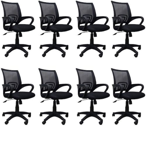 A Office Santiago com estrutura em Nylon, possui regulagem da altura com pistão á gás do assento e sistema relax, base e rodízios em Nylon, revestimento do encosto e da almofada do assento em tela mesh. Com design arrojado, possui a beleza perfeita para ambientes funcionais. Altura do Conjunto: 102 cm Ambiente: Escritório Ambiente Principal: Escritório Cor: Preto Informação Complementar: 8x Cadeira de Escritório Diretor Tela Mesh com Relax Santiago Preto Largura: 57 cm Altura: 102 cm Peso: 9,19 kg Profundidade: 61 cm Necessita Montagem: Sim