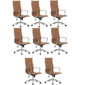 Conjunto com 8 cadeiras de escritório com estrutura em aço, revestimento em Poliuretano, com encosto alto. Possui base giratória em aço cromado e rodízios em nylon. Possui ajuste de altura (mínimo 105cm e máximo 115cm) e sistema relax. Produto Montado: Sim Altura do Conjunto: 105 cm Ambiente: null Ambiente Principal: Escritório Apoio para Braços Estofado: Não codigo_ean: 7909903318751 Complexidade da Montagem: Baixa: pode ser montado por uma pessoa sozinha Cor: Marrom Cor da Base: Cromado Cor do Produto: Marrom Informação Complementar: 2x Conjunto 4 Cadeiras de Escritório Presidente Giratória Sevilha Alta Marrom Escuro Largura: 60 Altura: 105 Peso: 10.2 Profundidade: 60 Necessita Montagem: Sim