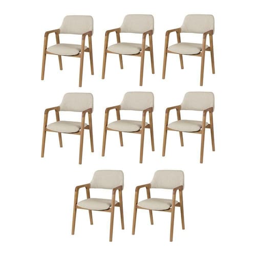AS IMAGENS SÃO MERAMENTE ILUSTRATIVAS E PODEM SOFRER VARIAÇÕES DE COR E PEQUENOS DETALHES DE ACORDO COM O SEU MONITOR, ILUMINAÇÃO DO AMBIENTE E ATÉ MESMO A SUA PERCEPÇÃO VISUAL.Conjunto 8 Cadeiras de Jantar Ruth Estrutura em Madeira MaciÃa Estilo Retrà Linho Bege Claro