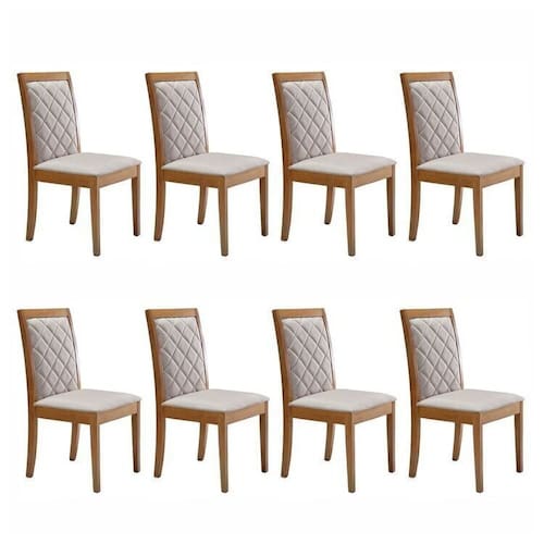 A cadeira estofada é confortável para uso prolongado? Sim, além da estrutura resistente em madeira maciça, a cadeira conta com um estofado macio e encosto com detalhes acolchoados. Acabamento: Pintura Altura do Conjunto: 98 cm Ambiente: null Ambiente Principal: Sala de Jantar codigo_ean: 7909903967027 Cor: Cinamomo/Bege Cor do Produto: Cinamomo/Bege Informação Complementar: 4x Conjunto 2 Cadeiras em Madeira Maciça e Estofadas Berlim Cinamomo/Suede Bege Largura: 45 cm Altura: 98 cm Peso: 8 kg Profundidade: 51 cm Necessita Montagem: Não