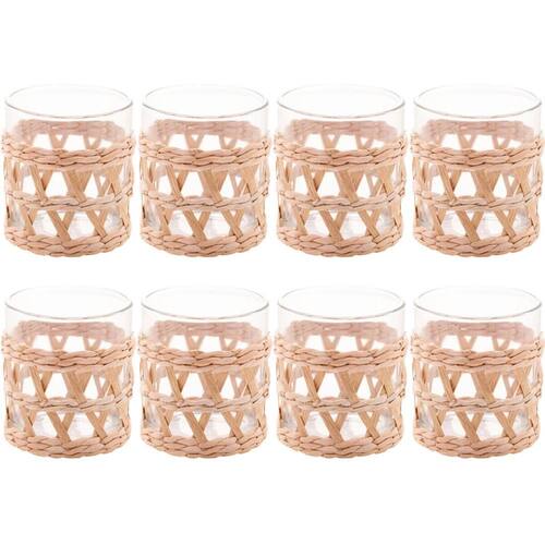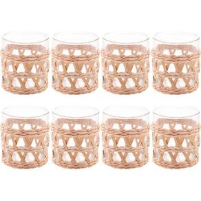 Conjunto 8 Copos Baixos de Vidro Wolff com Sisal 320ml Decorados Fibra Natural Rústicos.